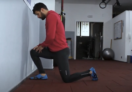 Coloca la punta del pie a unos centímetros de la pared y lleva la rodilla hacia delante hasta tocarla, sin que el talón se levante. Ajusta la distancia del pie para encontrar el punto máximo donde puedes llegar con control y estabilidad.